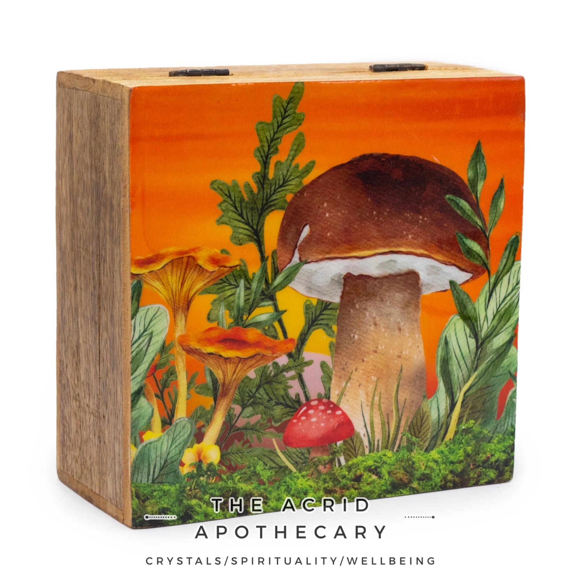Large Enameled Mushroom Design Square Box 15x17.5x8cm -Maroon