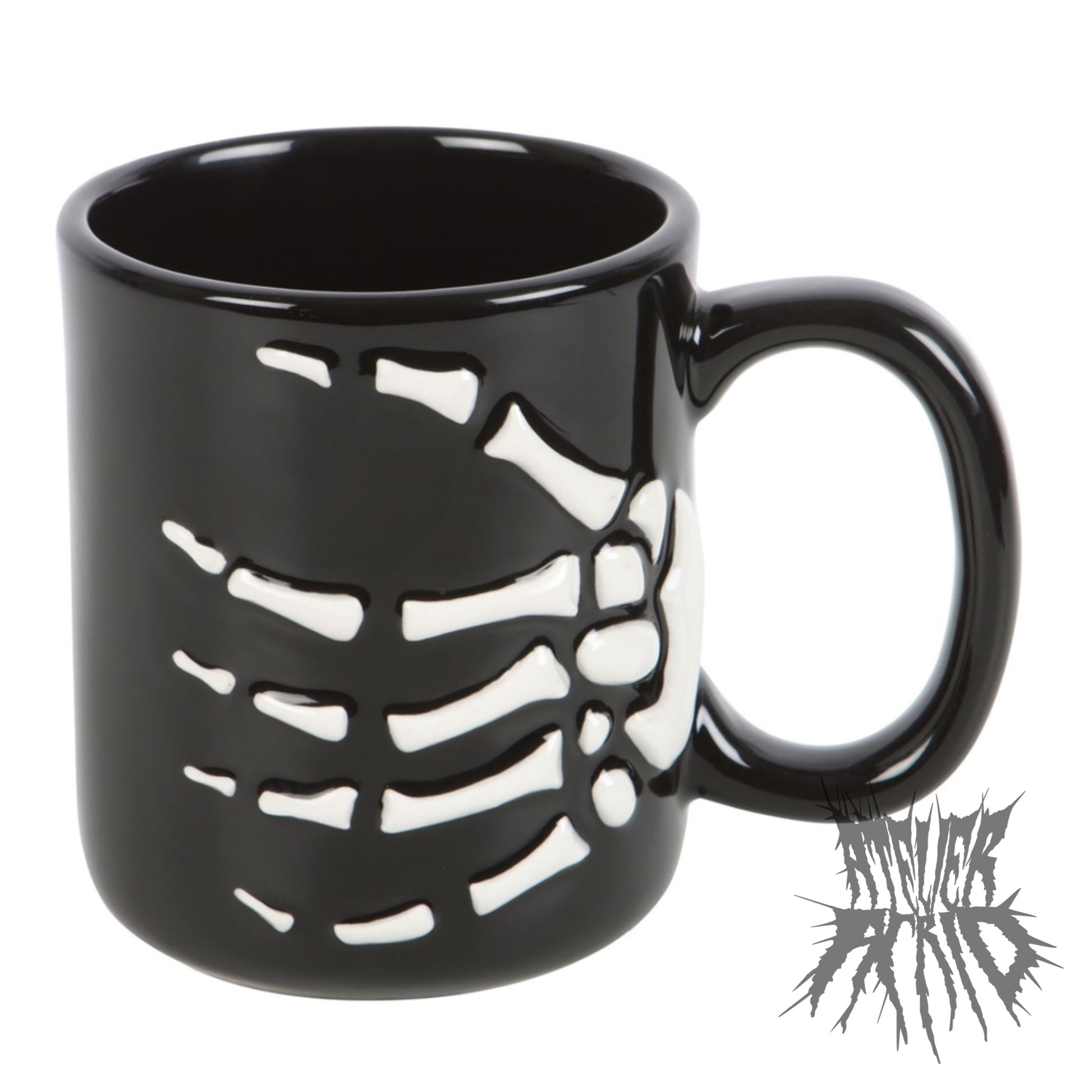 Feel dead without your morning cuppa? Make the transition from cosy crypt to cold commute a little bit warmer with this skeleton hand mug. 350ml capacity. Handwash only. Do not microwave.