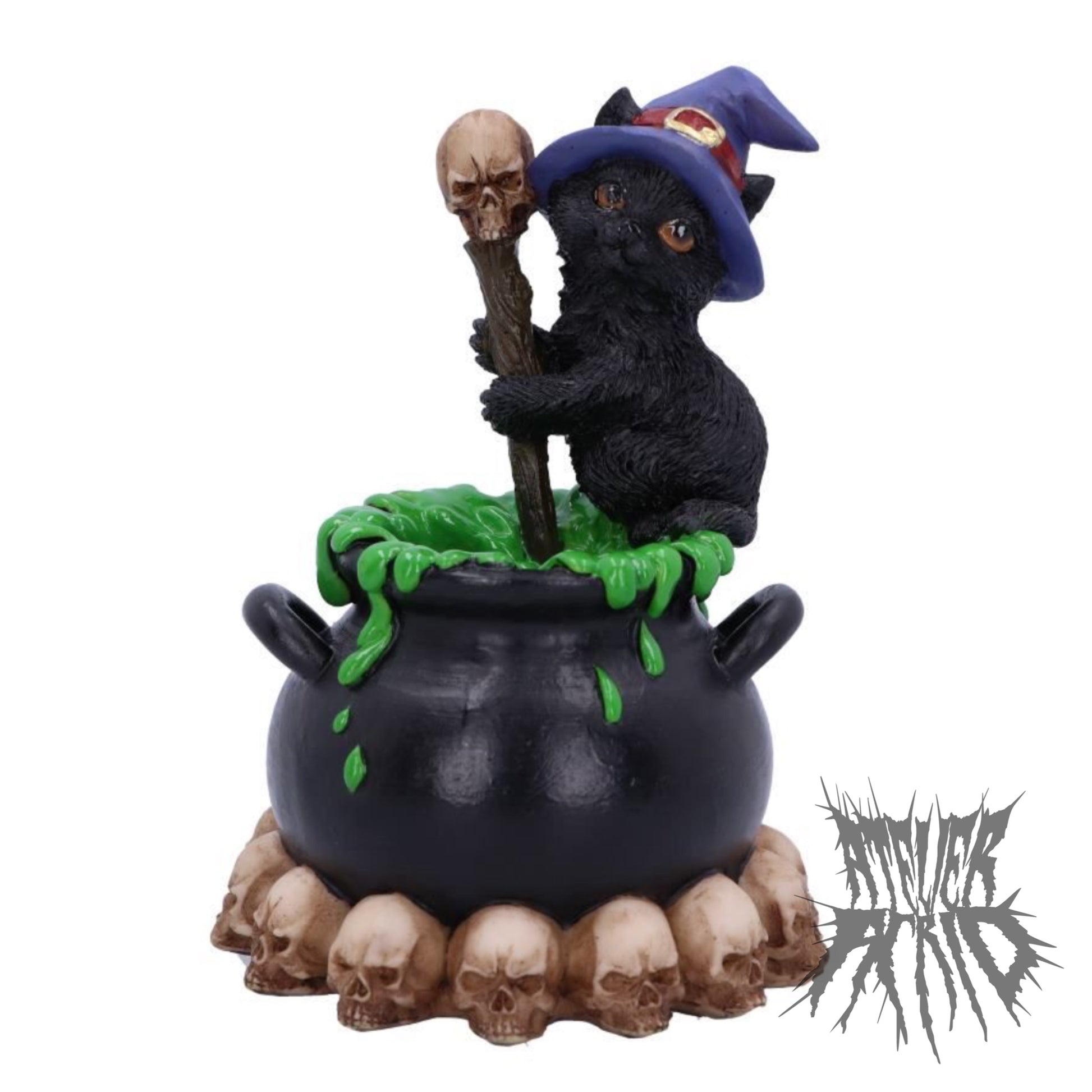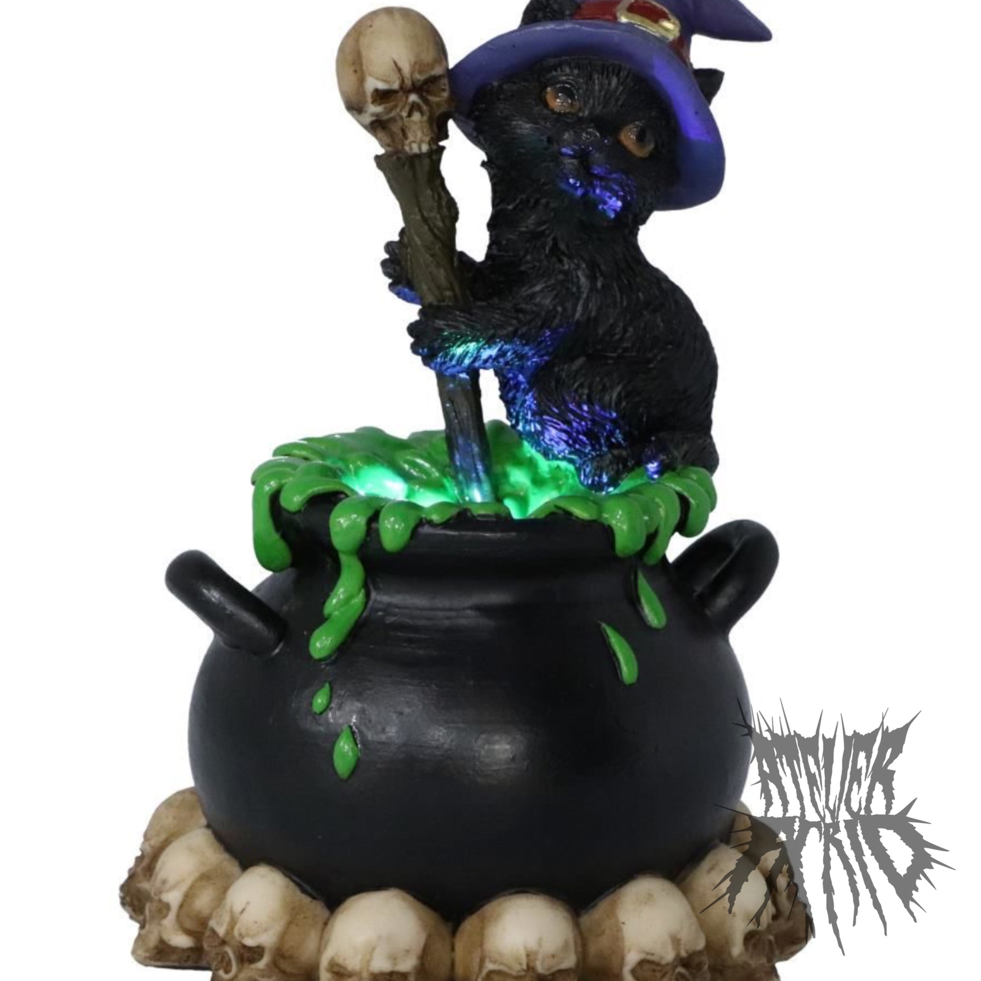Witches Familiar Black Cat and Bubbling Cauldron Figurine.