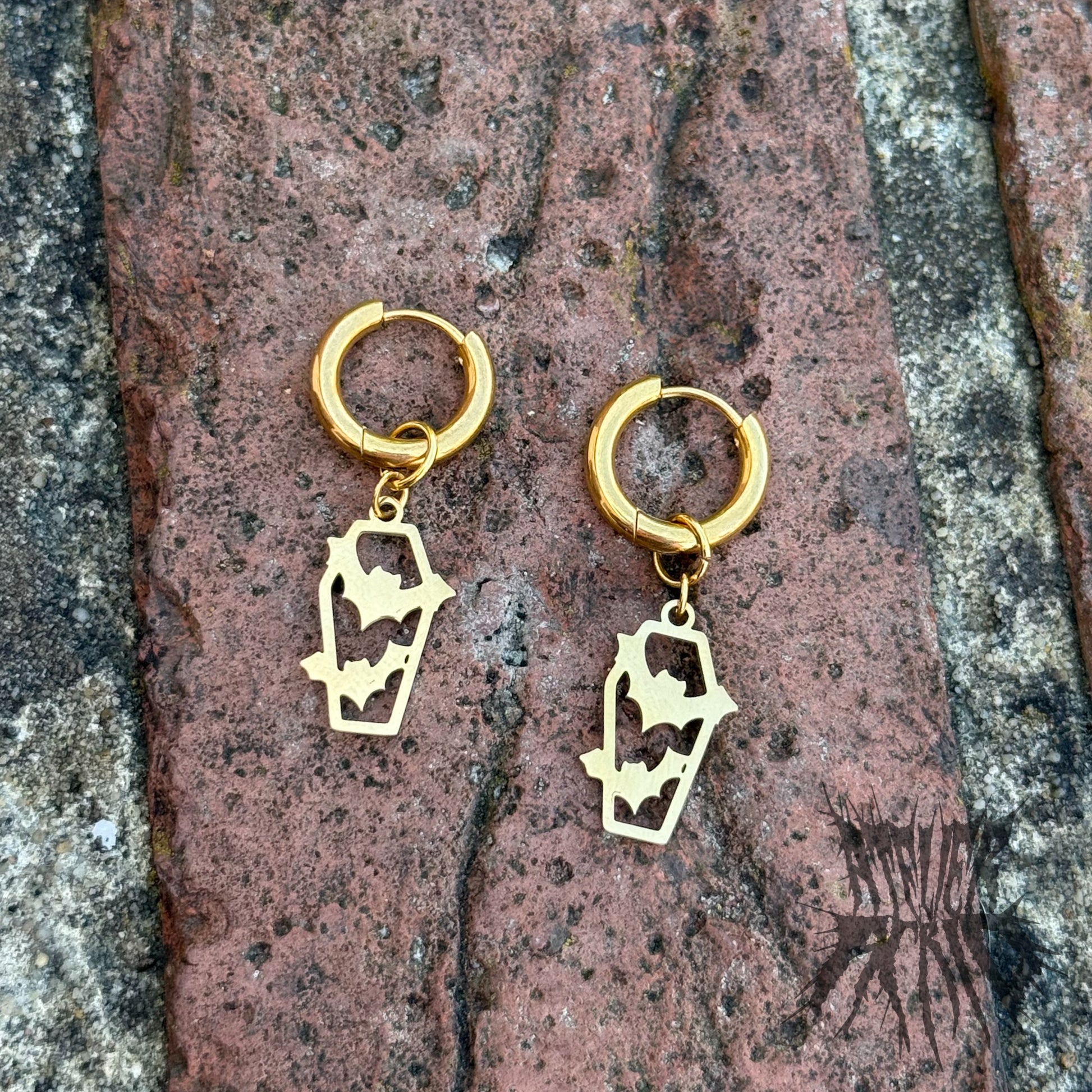 The Coffin Hoop Earrings - Gold Stainless Steel Hoops