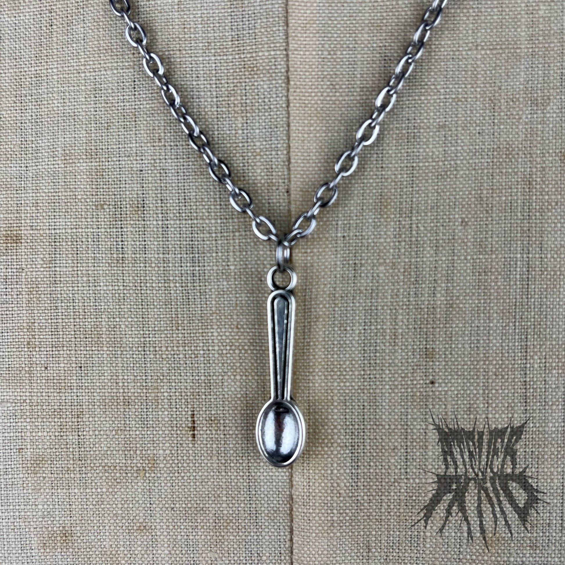 A very impractical teeny tiny spoon necklace available on either a cord or stainless steel chain (choose from drop down menu)